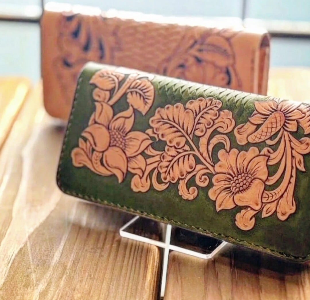 今、日常に彩りを添える「駿河の新緑」があなたをお待ちしています。この長財布は、廃棄するはずだったお茶の葉を使用し美しい色合いの染料を作り上げ手染めで表現し、手縫いと革彫りによって仕上げられた優雅なアイテムです。温もりのある手作業によって、財布一つ一つが個性的な魅力を持ち、持つ人の心を豊かにします。また、シンプルなデザインながら、洗練された印象を与えるため、あらゆるシーンで活躍すること間違いなしです。